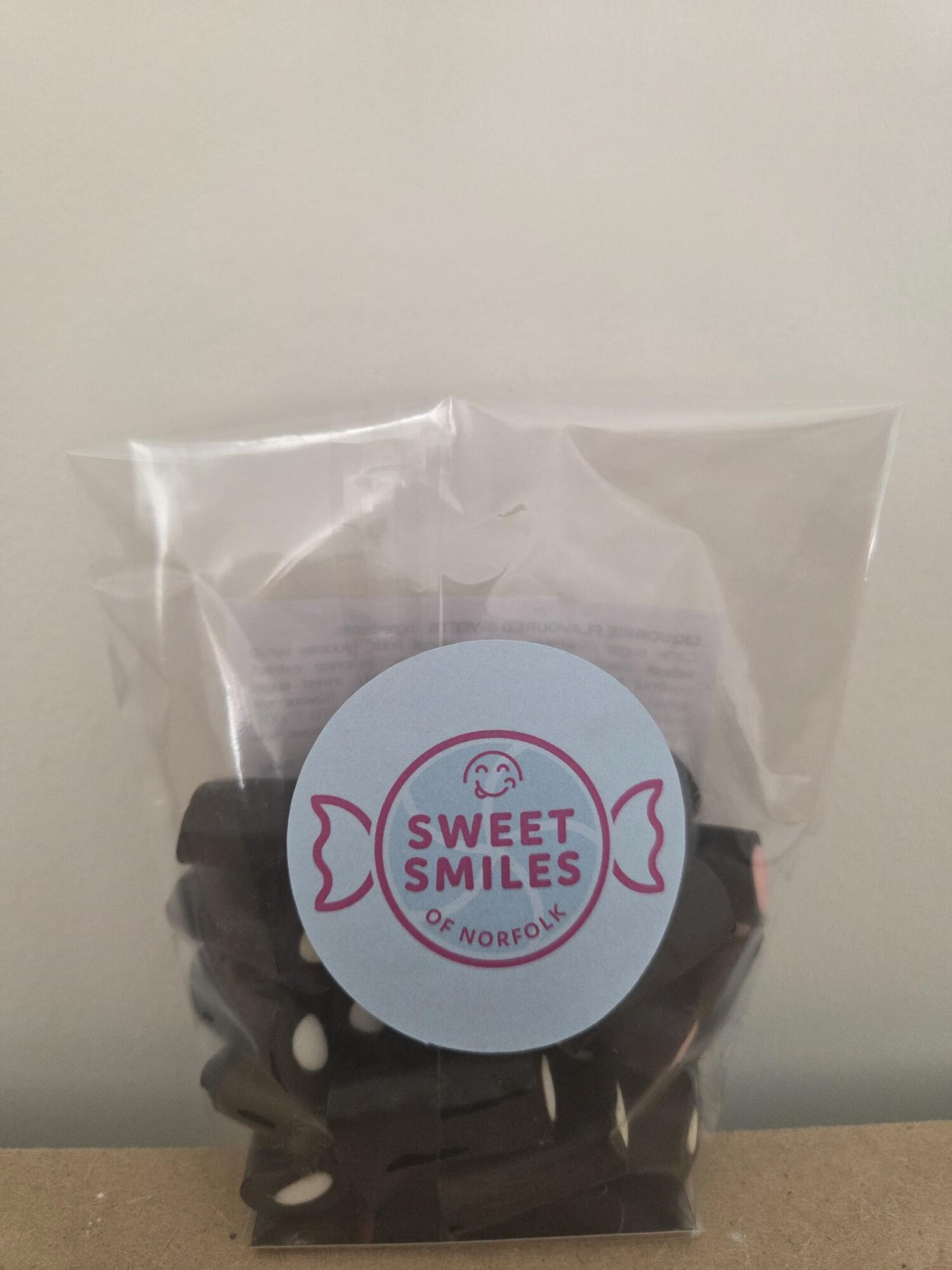 Assorted Liquorice Rock Bag – 120g. Traditional liquorice rock sticks with bold flavour and a firm crunchy texture.