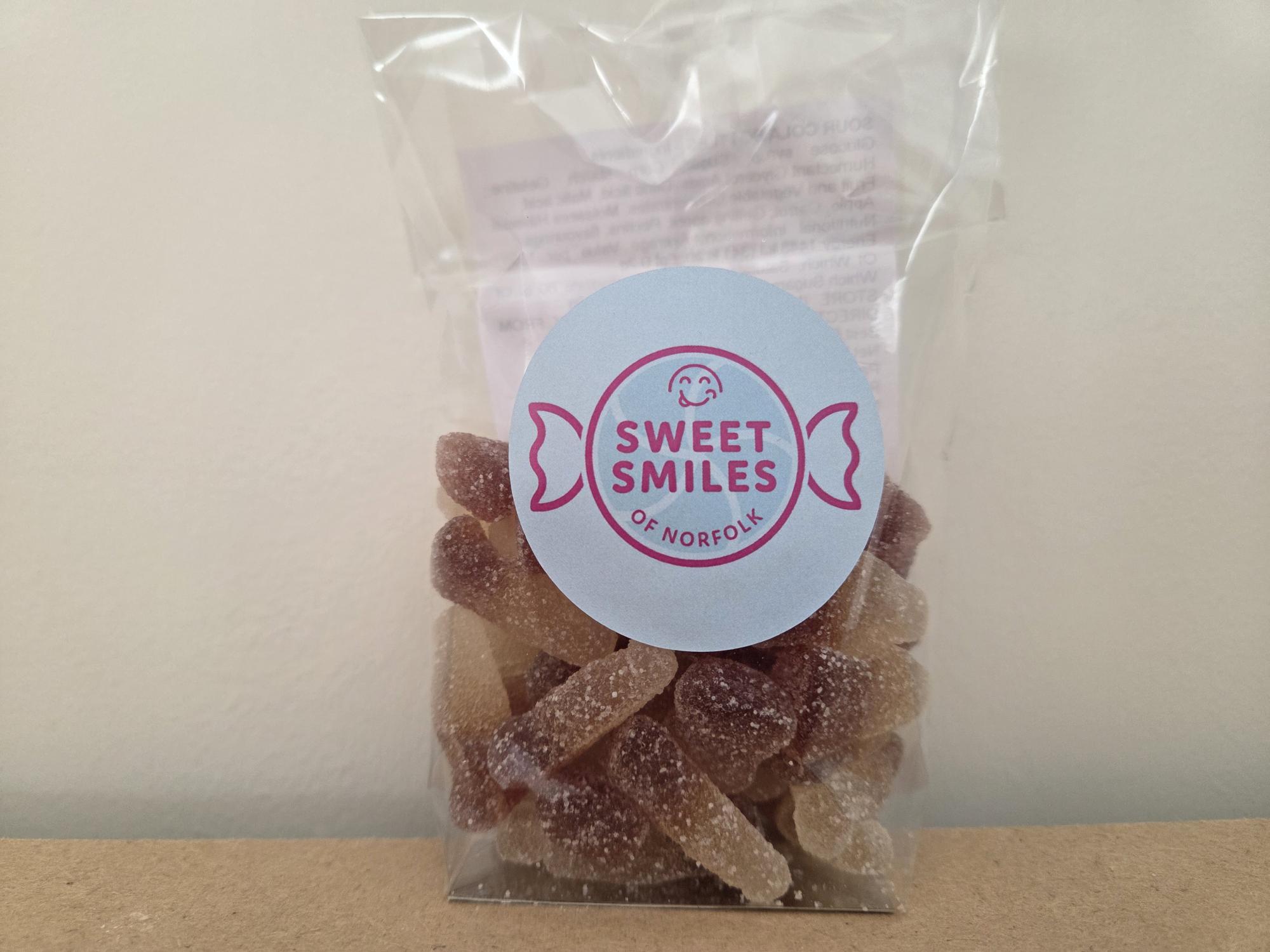 Fizzy Cola Bottles Bag – 120g. A fizzy twist on the classic cola bottle sweet, coated in a tangy sugar for an extra zingy bite.