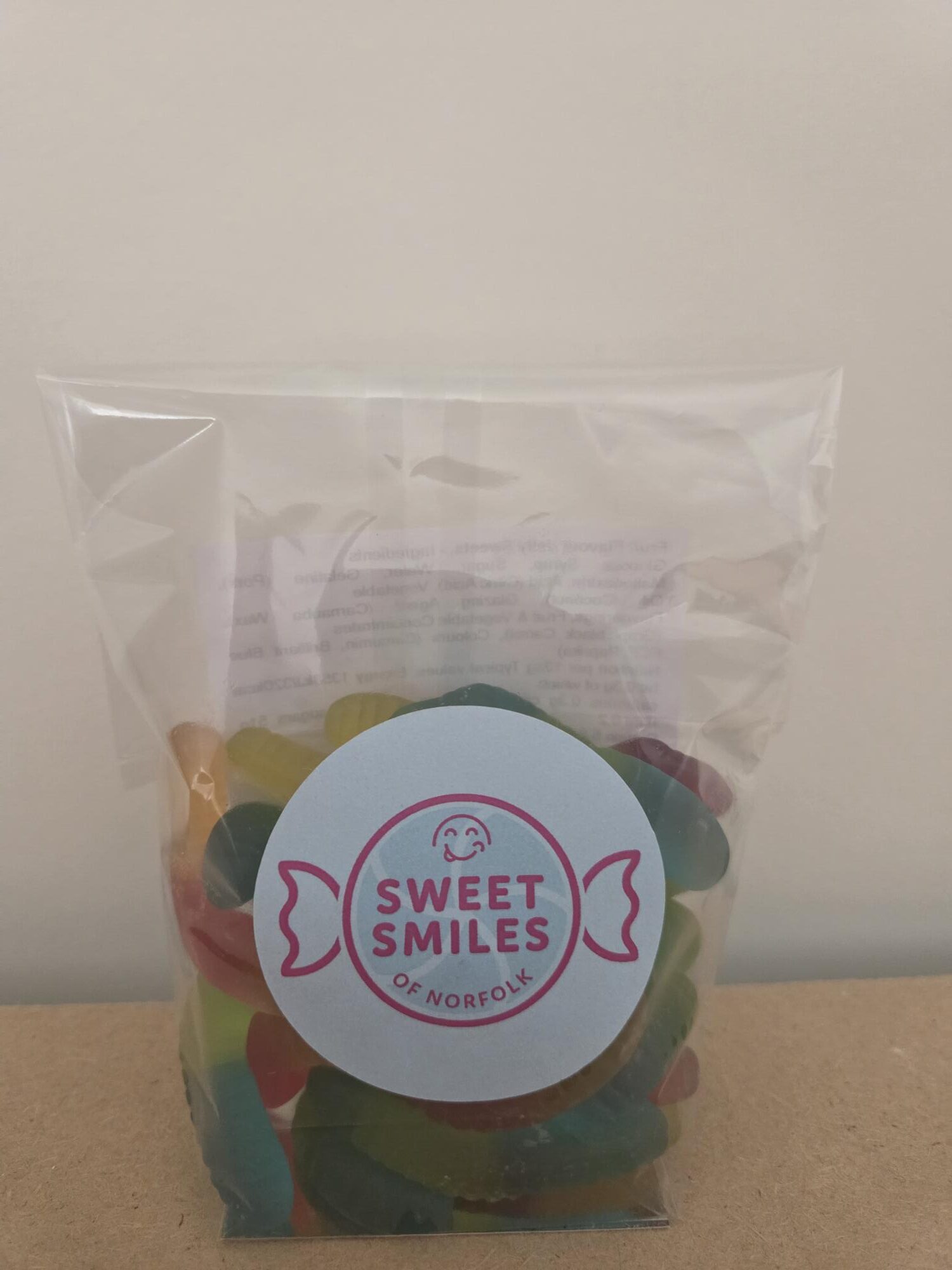 Jelly Snakes Bag – 120g. Long, chewy jelly snakes bursting with fruity flavour in every bite.